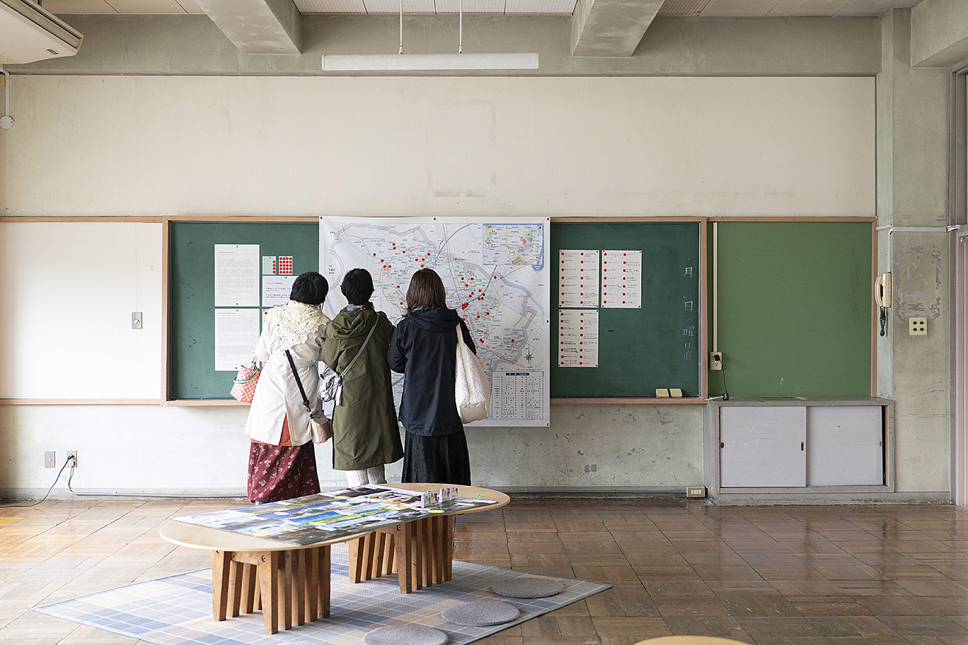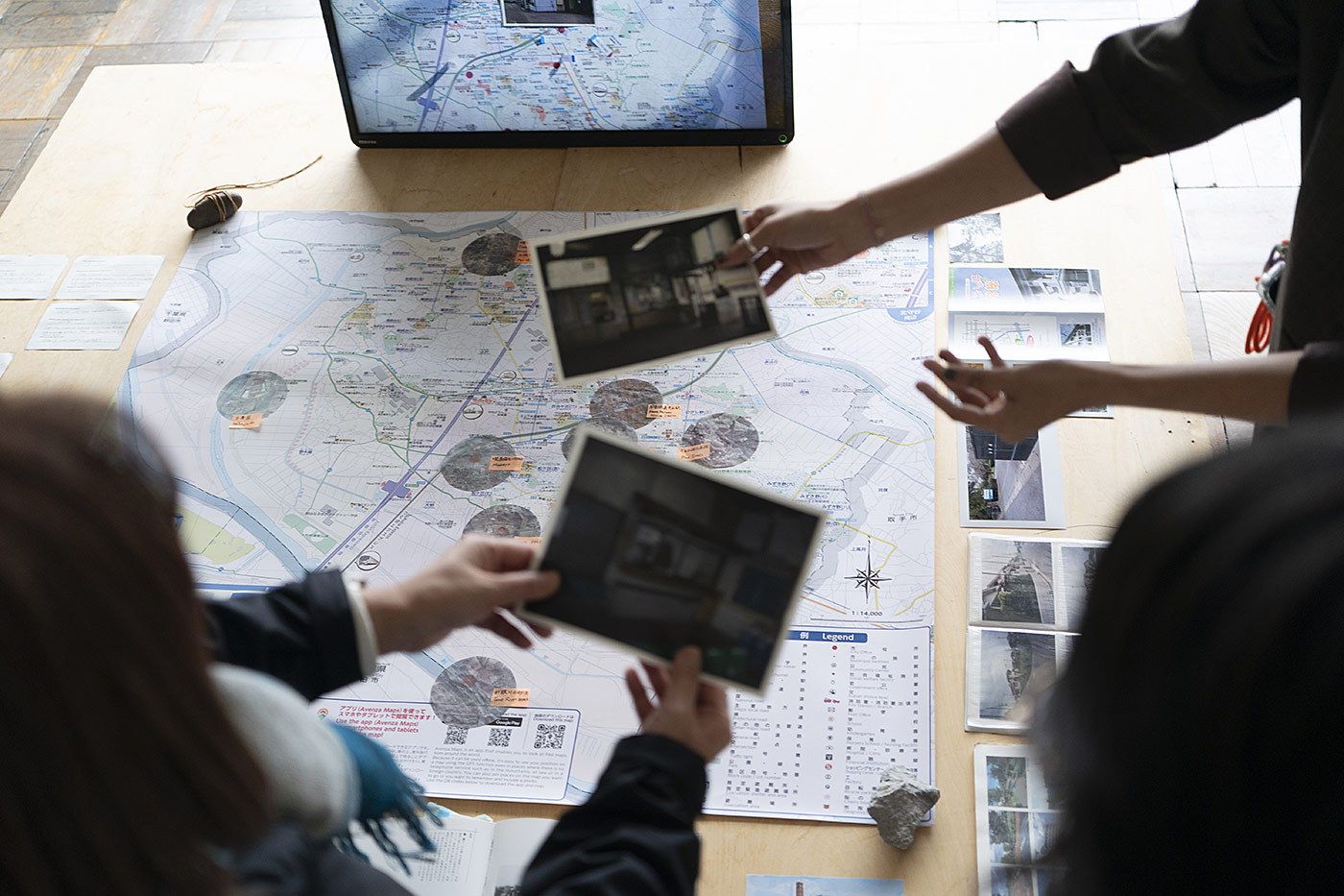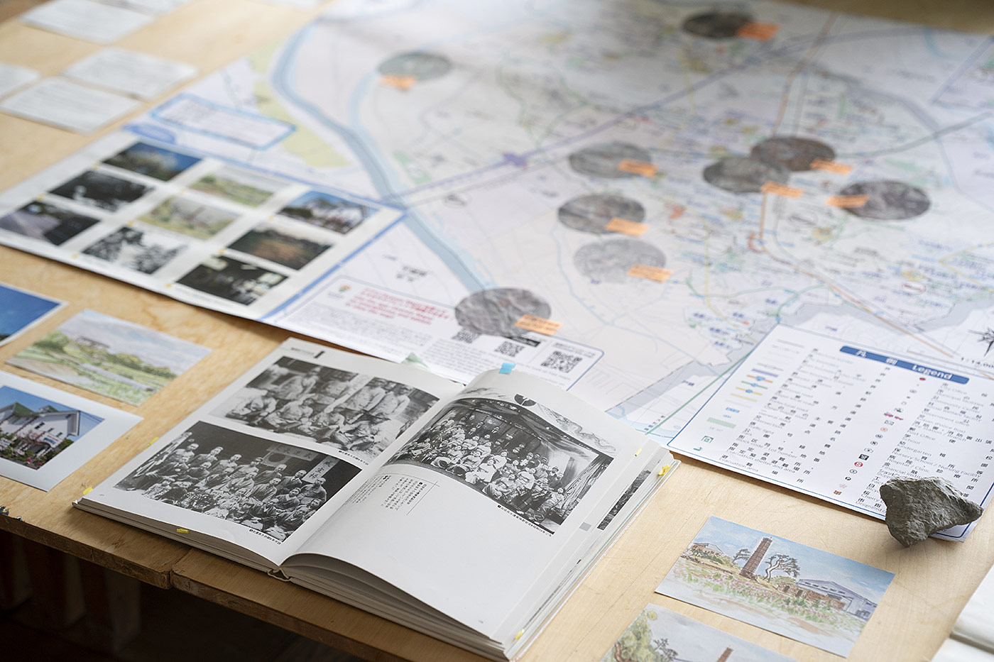 Tandon Vieira seeks to dismantle such maps and the power relations involved in their creation, returning the act of map creating to the hands of ordinary citizens. This allows a new freedom for people to interpret social spaces and the land. She asked of people living in or passing through Moriya: “Where is the heart of the Moriya?” “What places in Moriya are important to you?” “What places in Moriya have been lost?” The more people answer, the more complex and richly layered the image of Moriya becomes; this is not something that can be reduced to a single logic or rationale. The resulting psychological map of Moriya reveals, for example, invaluable events people experienced during lifetime milestones, scenes of the landscape which other people do not notice, or memories of the town as it was before the Tsukuba Express train line opened. Moriya residents who visited the Open Studios would likely select different places again, while those coming to Moriya for the first time may select the ARCUS Studio itself. This is a subtle social experiment in questioning the authority of maps provided, and instead reading the place anew through one’s own understanding.