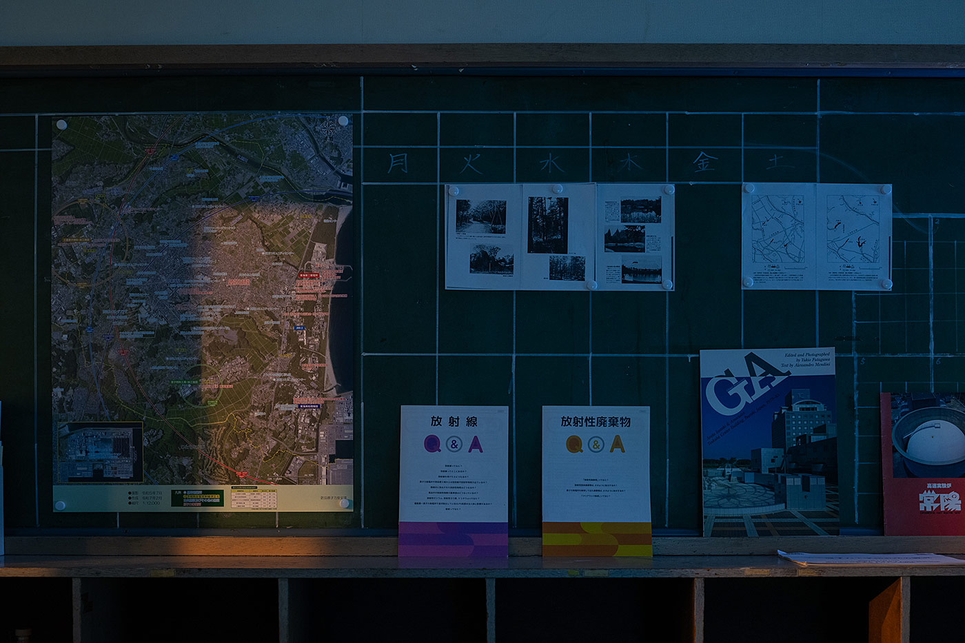 Photographs of nuclear facilities and other related documents are displayed at his studio. His video work captures radiation as it passes through a cloud chamber. Materials relating to the Tsukuba Center Building, designed by Isozaki Arata in the city of Tsukuba and completed in 1983, are also on view. Isozaki notably made drawings of the building as an abandoned ruin at the time of its completion. Sato’s residency project, in which themes of radiation and ruin seem to be somehow linked, does not end here: rather, he will continue to develop it further over the coming several years.